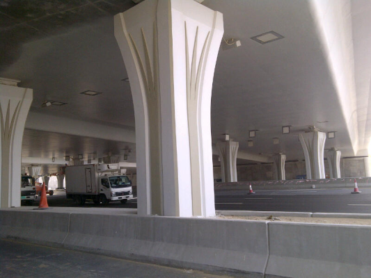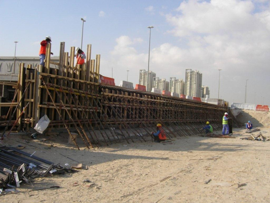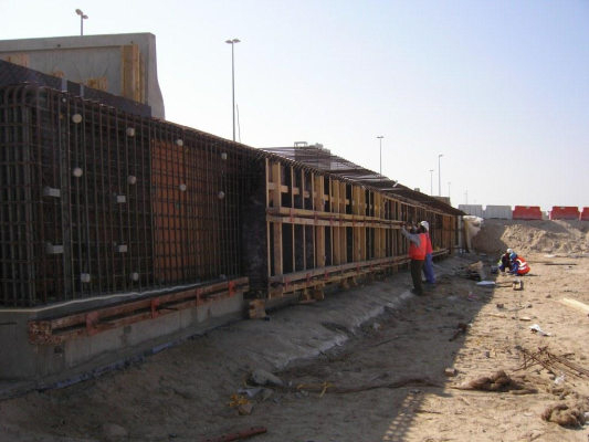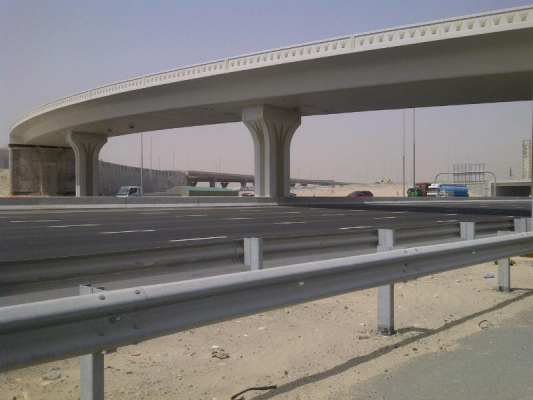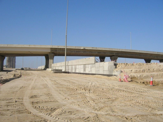R842/1 - IMPROVEMENT OF AL KHAIL ROAD (AL KHAIL ROAD-EMIRATES ROAD JN.9)This project is the most prestigious contract in Dubai emirate as it forms the intersection of 2 major expressway i.e. Al khail Road & Emirates Road.This project was realized to cater for a free flow of traffic in both Al Khail &Emirates Road and also various communities being developed like JumeriahVillage, Sports City,Jumeriah triangle and other communities along both highways.The principal requirement of the project was to construct all the 8 bridges and flyovers along with 25000m2 RE wall/6 KM of coping beam without disrupting the traffic and to a very stringent safety standard.
