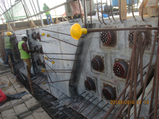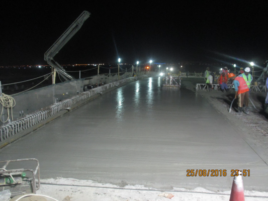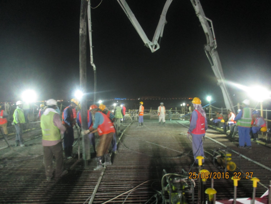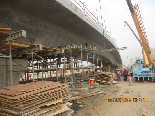 The works involved includes a box girder, variable depth, post tensioning bridge, 3 spans plus the approach embarkments with retaining wall. The deck is also lighted up with high quality LED lights.